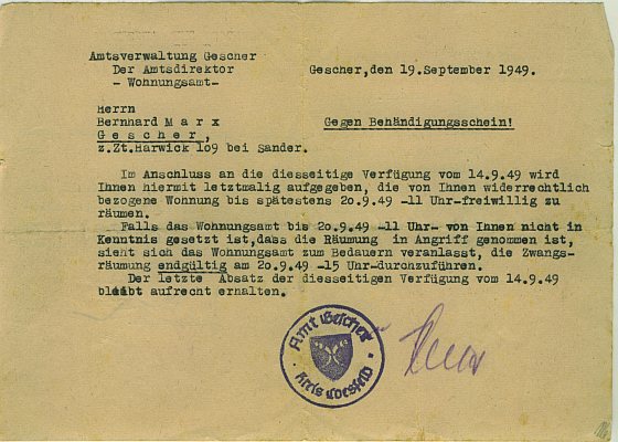 1949 starb Richard Marx sen. und sein Sohn Bernhard Marx übernahm gemeinsam mit seiner Frau Elisabeth die Firma in Gescher. Sie bauten das Sortiment für die Schausteller Zug um Zug aus. Zuerst kamen Wedel (Neckfedern), einfache Tröten (Trompeten), Neckbälle und andere einfache und leichte Artikel hinzu; eben solche Artikel, die mit dem Fahrrad leicht transportiert werden konnten. Bis 1950 war das Zweirad, neben dem Eisenbahnversand, das Transportmittel der ersten Wahl. Mit dem Erwerb des Führerscheins durch Bernhard Marx im September 1950 und der Anschaffung des ersten kleinen DKW-Kastenwagens waren die Transportprobleme zu den Schaustellern endlich gelöst. Durch diese neu gewonne Mobilität machte der Ausbau dieses Geschäftzweiges gute Fortschritte, zumal die Kunstblumenproduktion immer mehr zurück ging.
